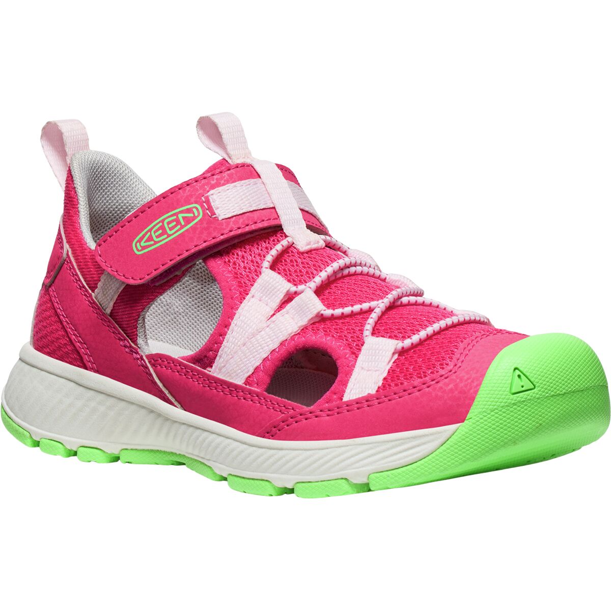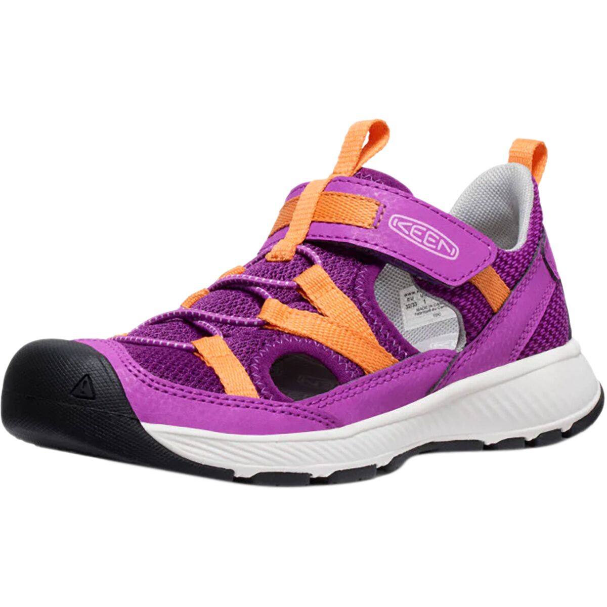 KEEN´s Motozoa Sandal is our junior adventurers´ favorite outside shoe due to their go-anywhere, do-anything design. The hybrid hike-to-water construction features quick-drying mesh uppers, easy on-and-off bungee lacing, and drainage holes. The closed toe and hook-and-loop strap provide kiddos extra security while they climb and run, and the aggressive, athletic shape lets them push their power to the max.